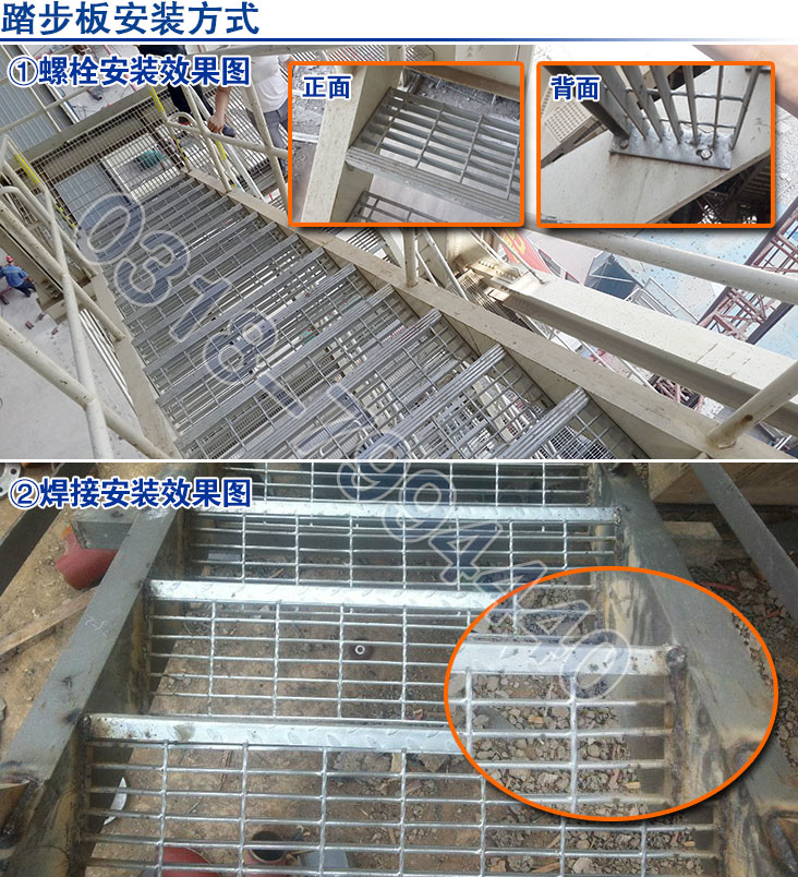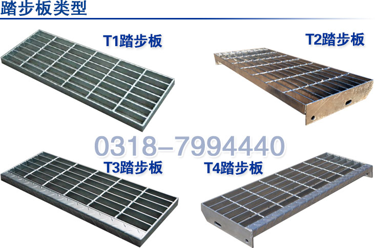 (3)T3踏步:由承載扁鋼和橫桿按照特定的比例焊接而成的,帶有前防護板,防止滑倒。